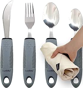 BUNMO Utensils for Elderly, Arthritis, Weak Hand Grip & Handicapped – for Tremors and Parkinsons Patients – Arthritis Gifts for Seniors – Gifts for Disabled Adults – Adaptive Gray 4 Piece Set Shop Now »